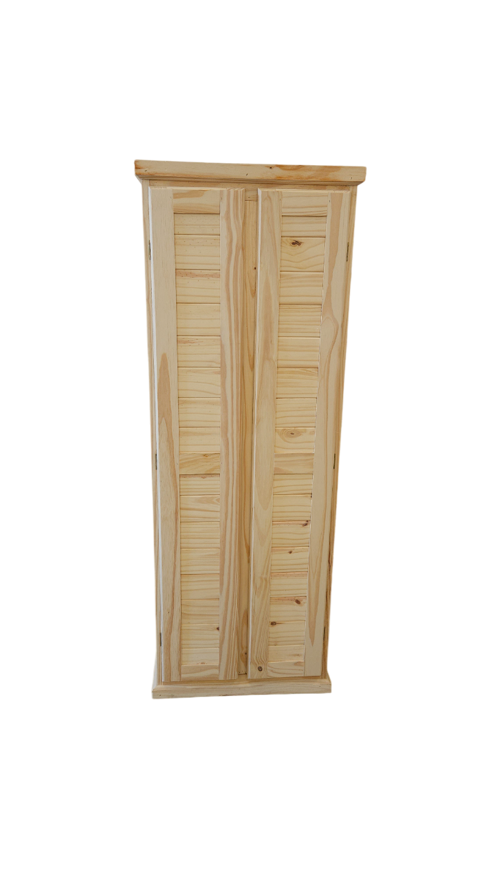 Sus puertas y laterales machimbrados aportan un diseño prolijo y sólido, manteniendo el estilo clásico y natural del pino.