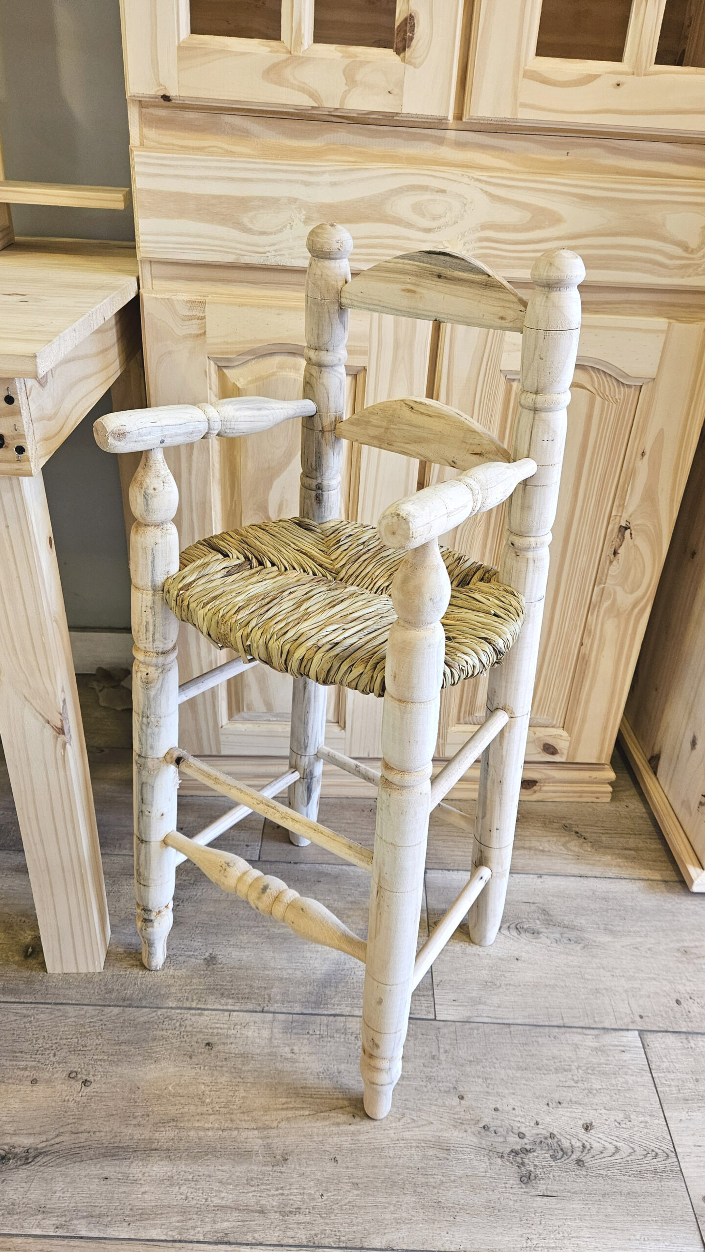 Perfecta para comedores, cocinas o espacios infantiles, esta silla une seguridad, confort y estética artesanal.
